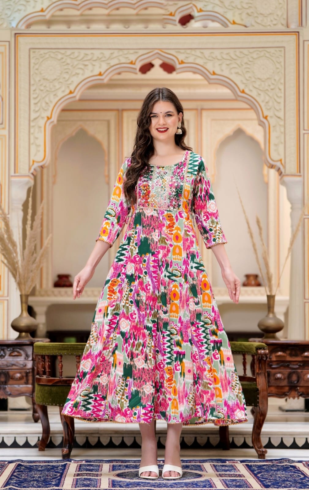 Women's Pure Viscose Rayon Floral Print Straight Kurti - Multicoloured